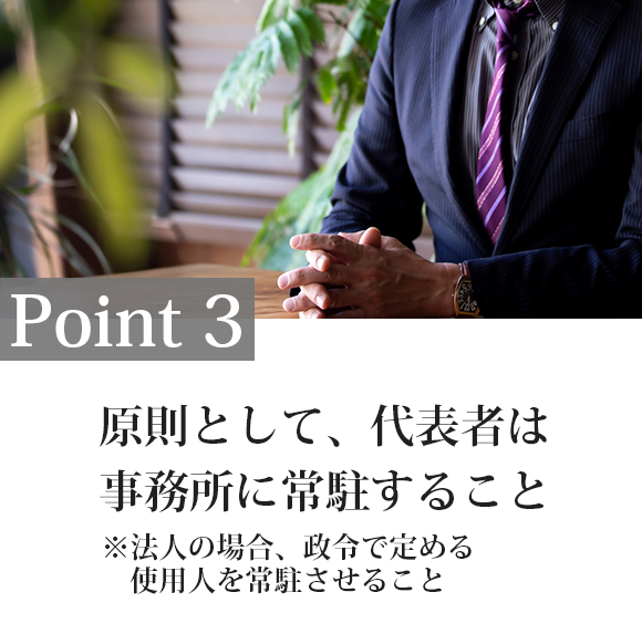 宅建業免許申請のポイントは、「専任性」と「常駐性」になります。